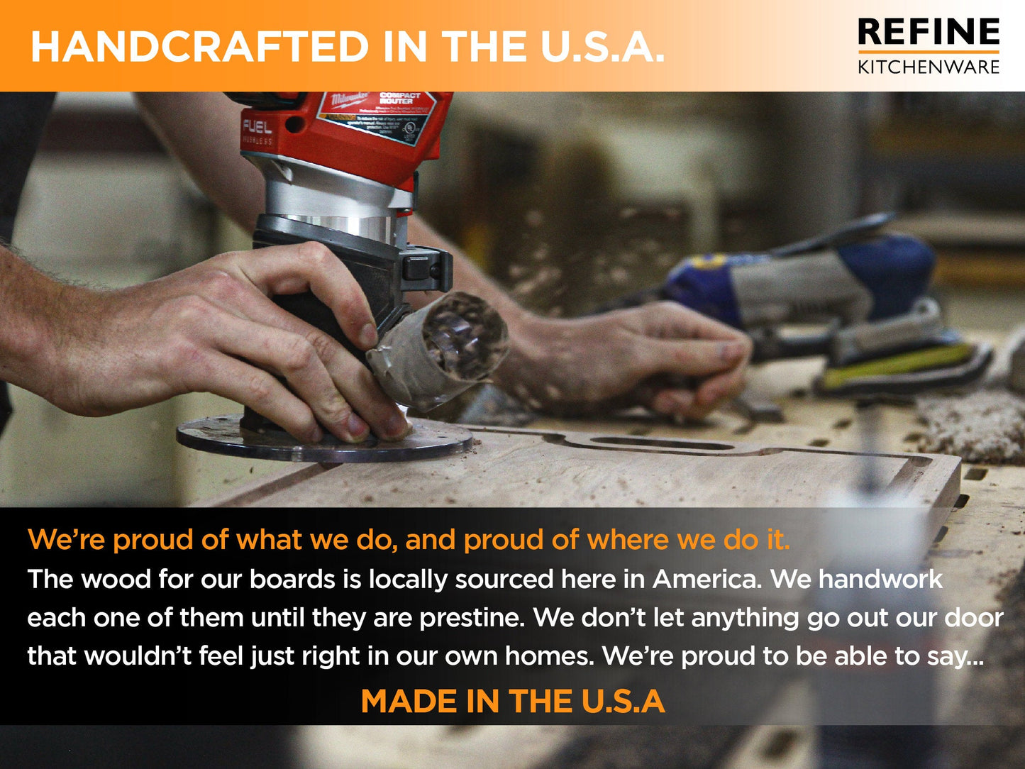 - RESPONSIBLY MADE IN THE USA: Each board that we produce is made right in Ohio, from scratch, and quality checked along the entire way. All wood is kiln dried and carefully crafted to meet the standards we expect in a quality cutting board. The result is a solid, sturdy and reversible board that will last you for year to come. It won't warp, crack, or splinter if properly maintained.