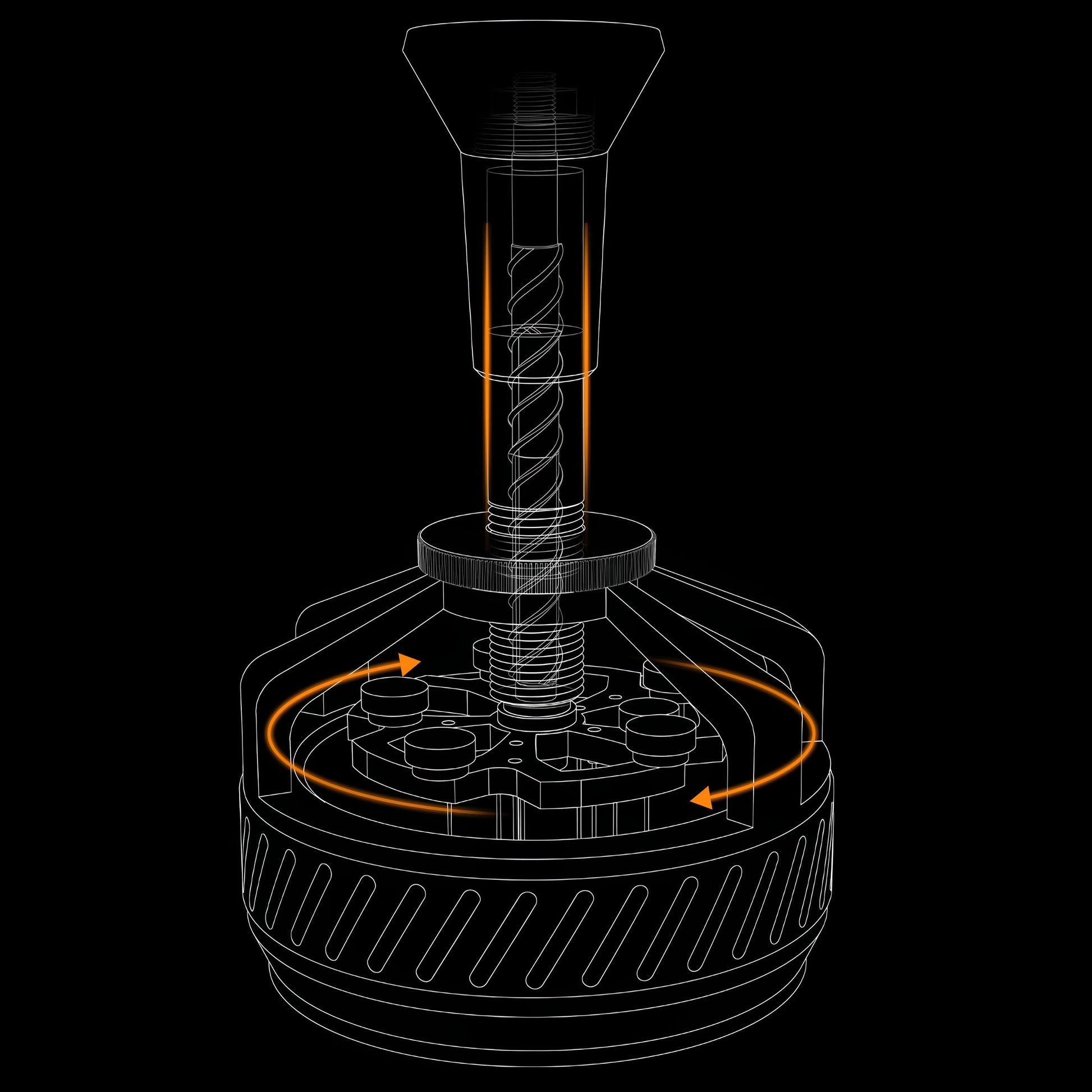- Pressure Distribution System: New spiral sleeve design enables smooth vertical movement. Central shaft follows sleeve's spiral rotation for efficient distribution. Quick and effortless powder distribution process.