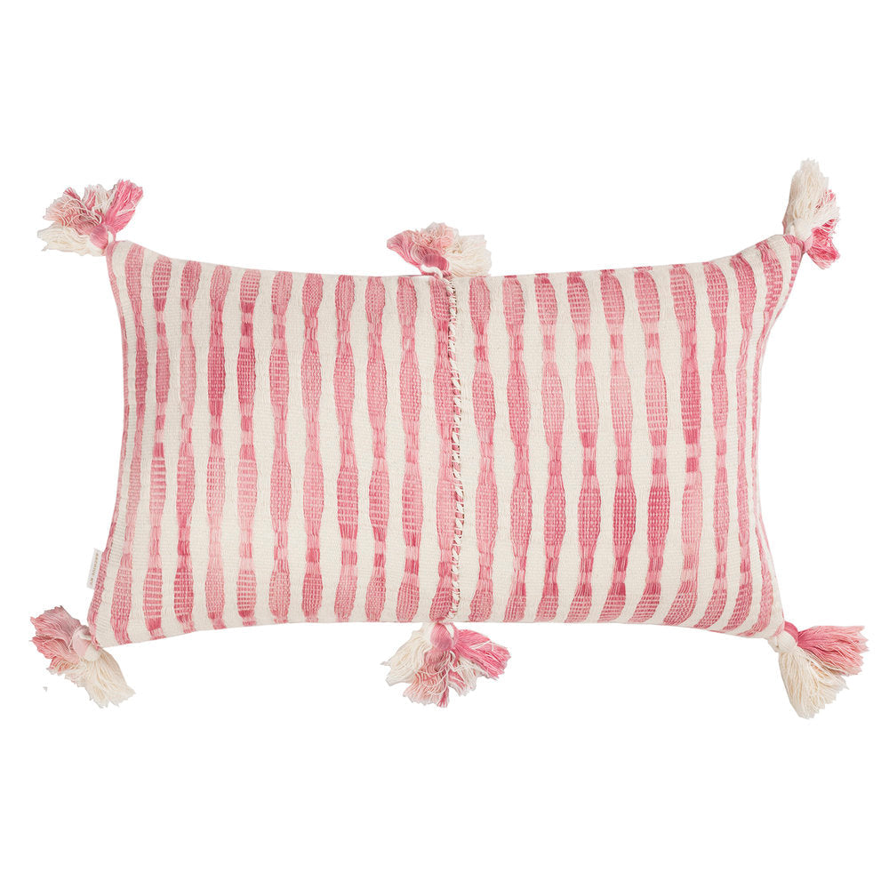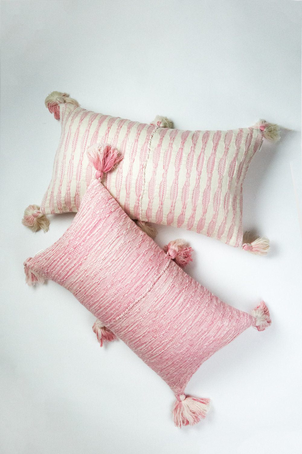 These pillows were hand-dyed with 100% natural plant dyes from the Palo Brasil tree. This textile was made in partnership an artisan group just outside of Antigua, Guatemala.