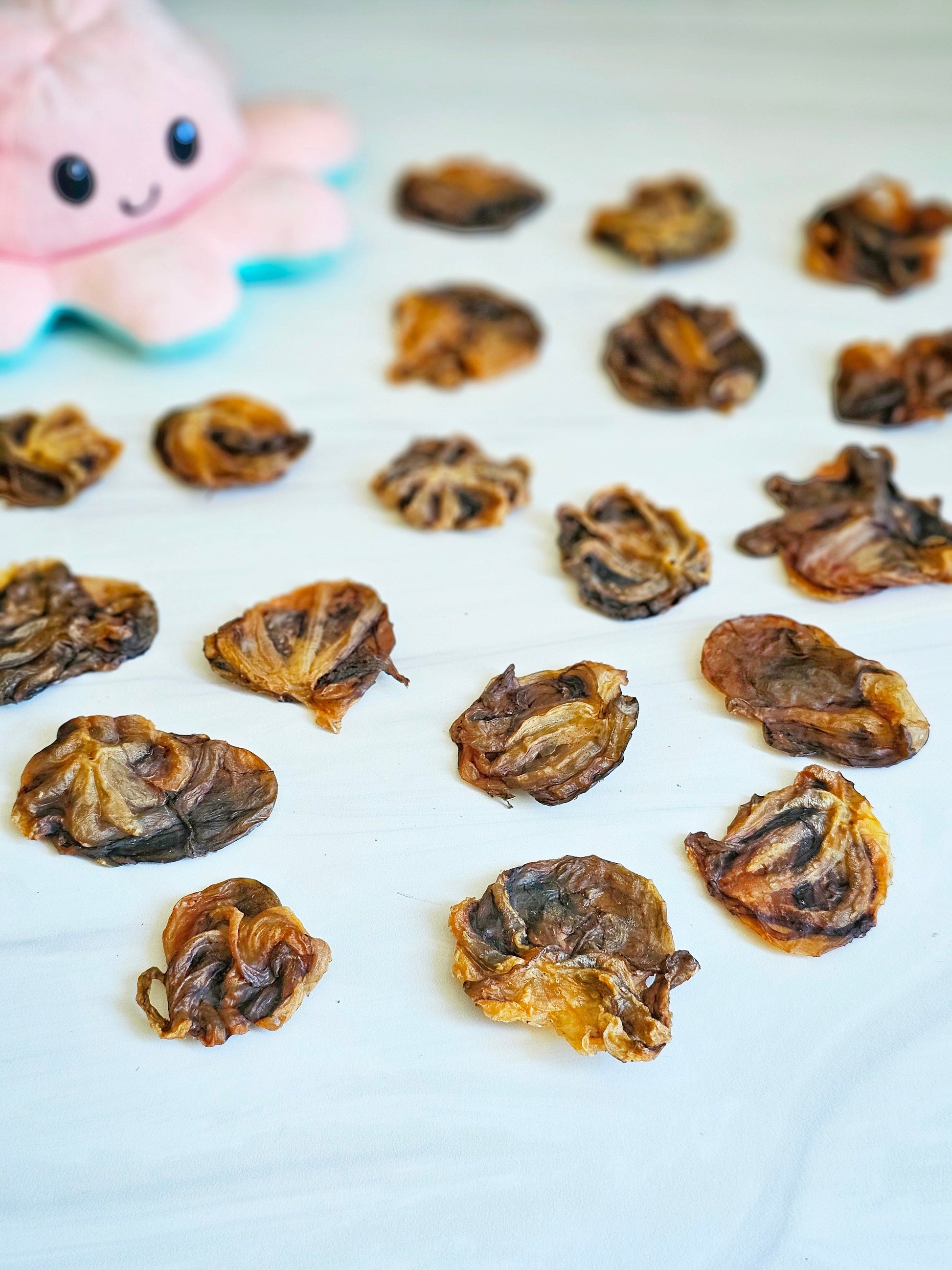 Dried Octopus intended for human consumption is also not advised due to their excessive amounts of added salts, flavorings, spices and artificial preservativesā£