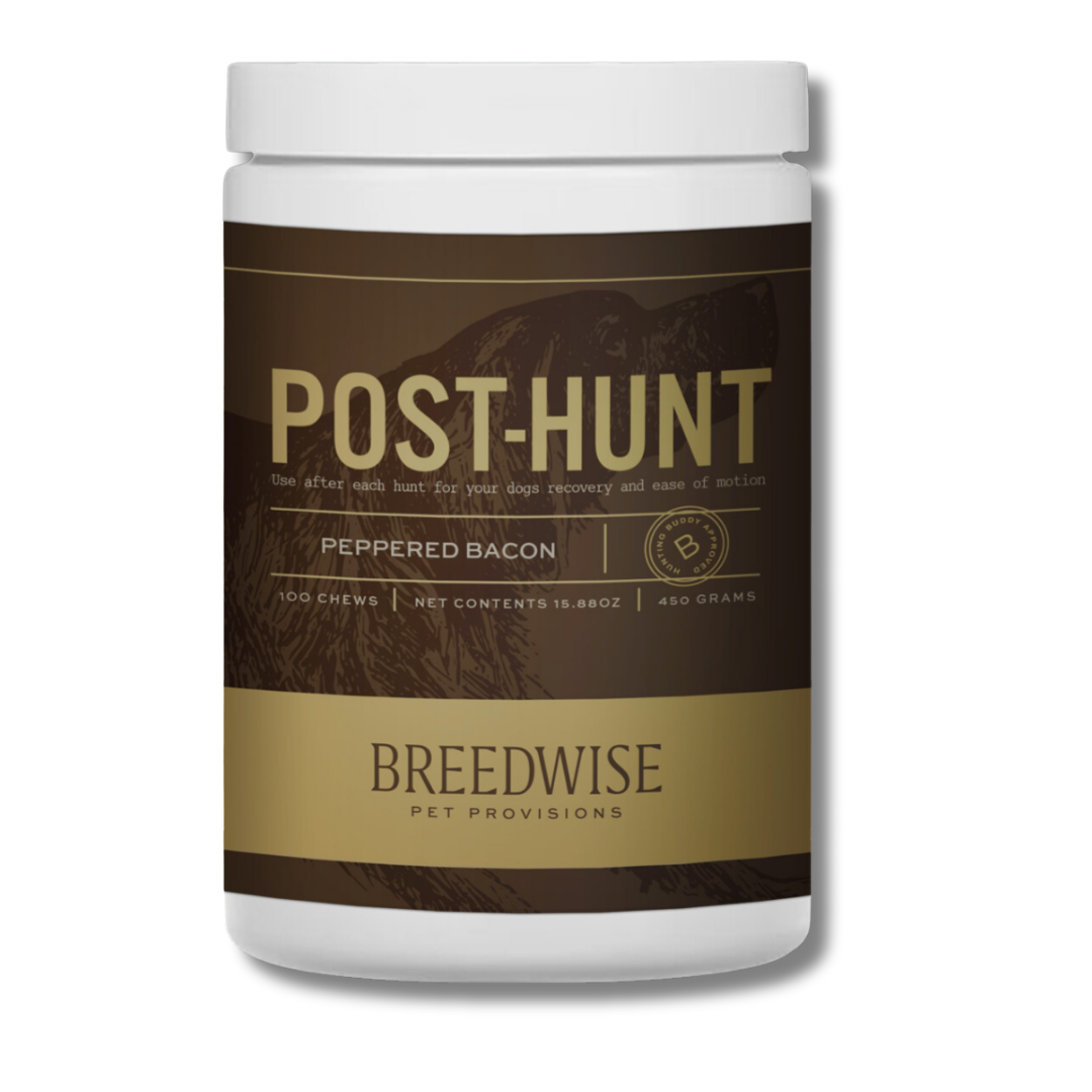 Breedwise Post-Hunt Soft Chews are specifically formulated to help sporting dogs with muscle recovery, electrolyte balance, and energy levels following strenuous outdoor activity!