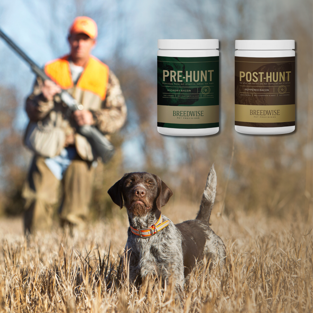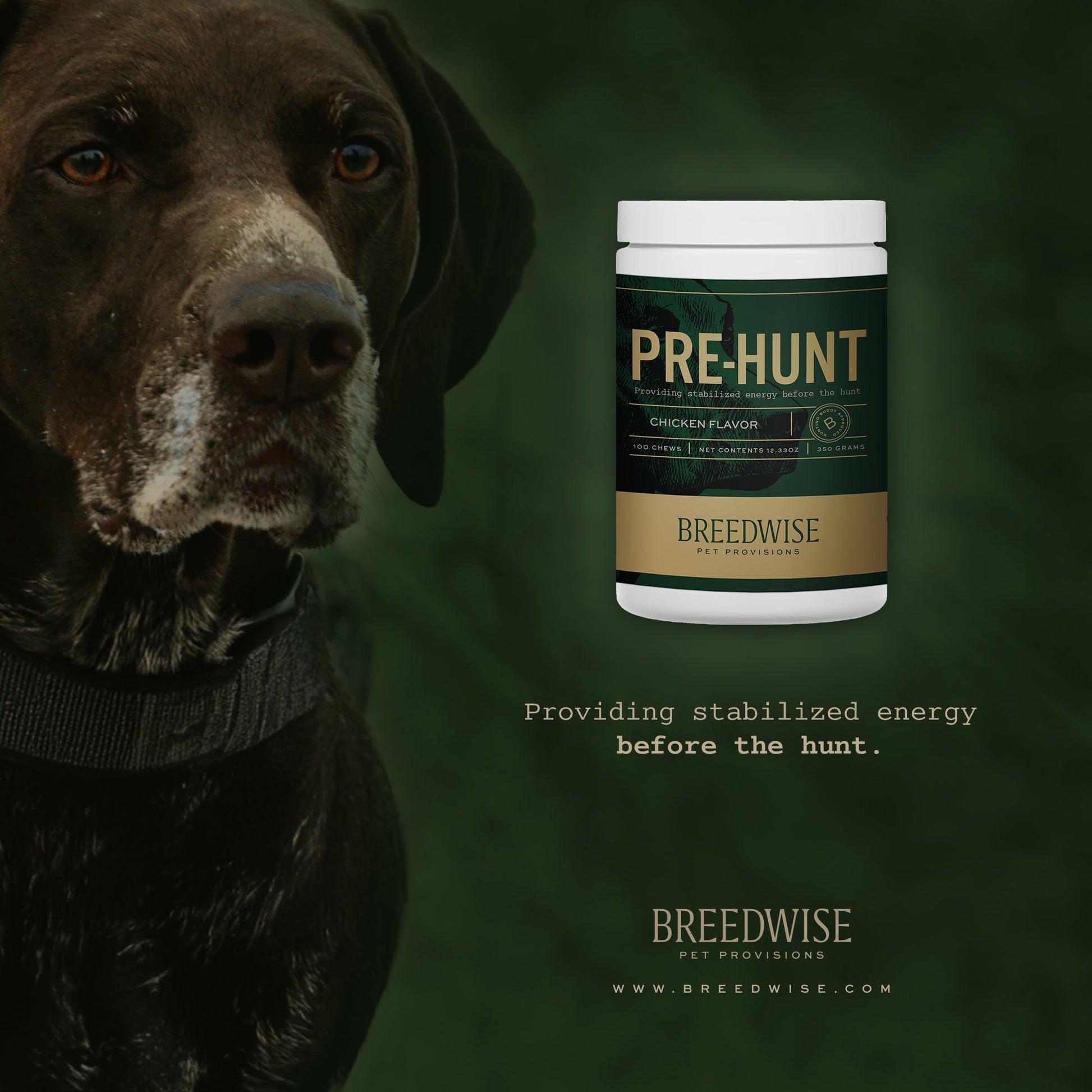 - Breedwise Pre-Hunt Soft Chews are specifically formulated to help sporting dogs manage the excitement and stress of a hunt.