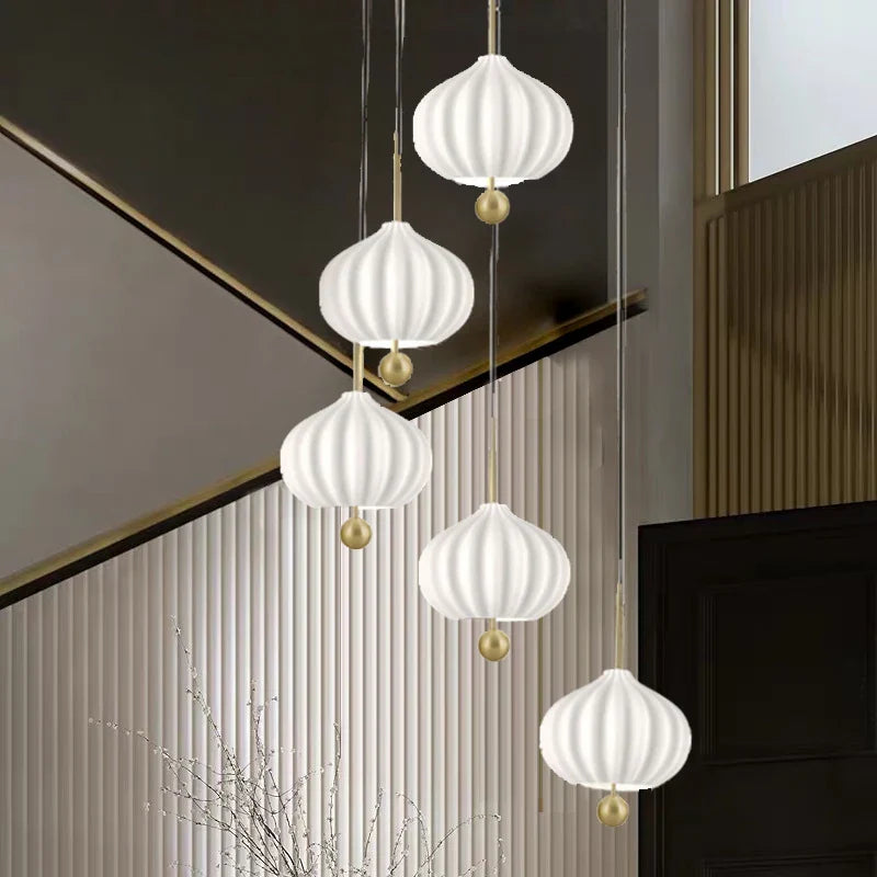 Elevate your interior with the Glass Pumpkin Ceiling Chandeliers, a symbol of Nordic elegance and efficient lighting. These chandeliers are thoughtfully crafted to enhance the ambiance of staircases and ceilings. With their clean white Nordic design, energy-efficient LED lighting, and the charming glass pumpkin accents, they not only provide ample illumination but also add a touch of whimsical sophistication to your home decor.