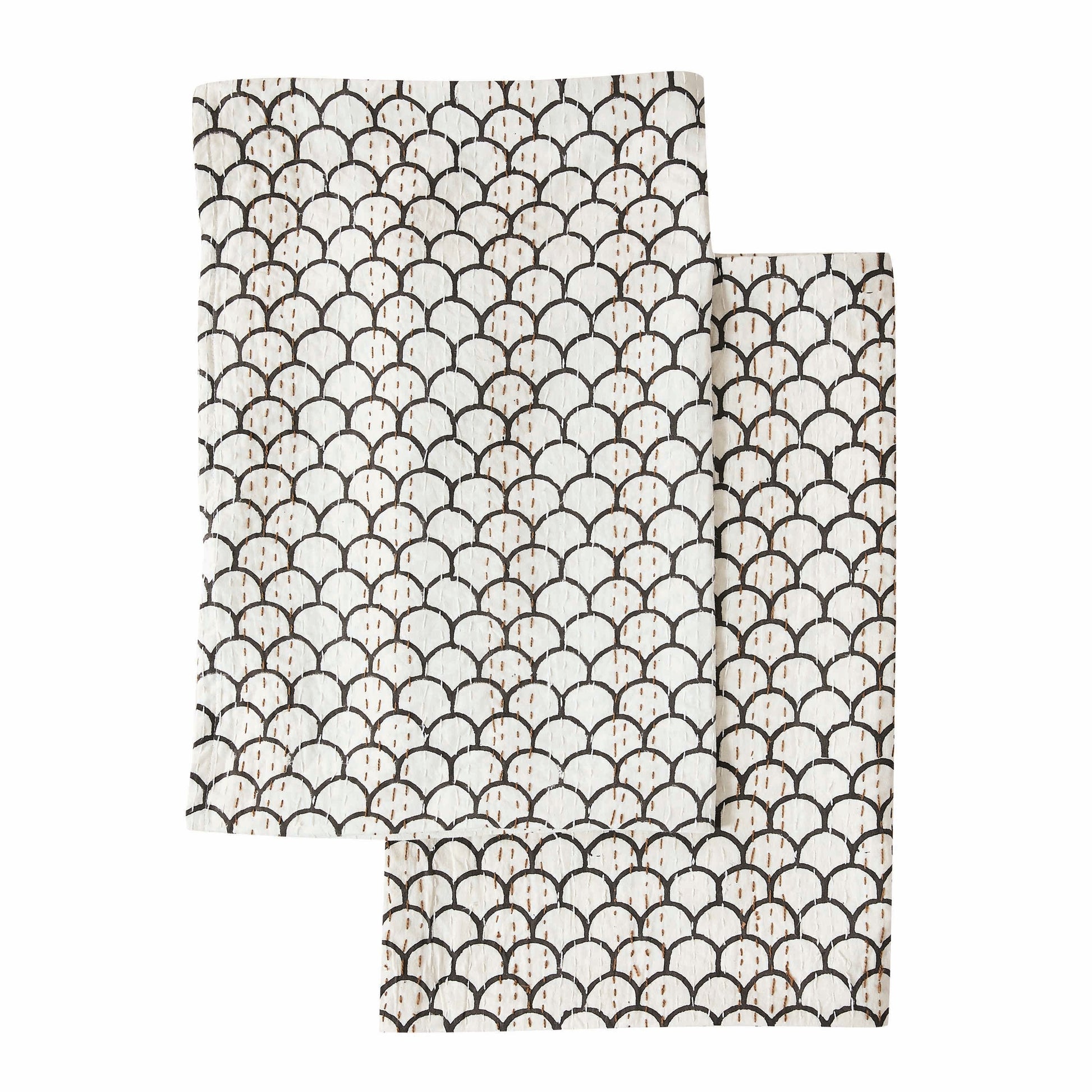 Hand Stitched Block Print Kantha Pillow Sham Pairs