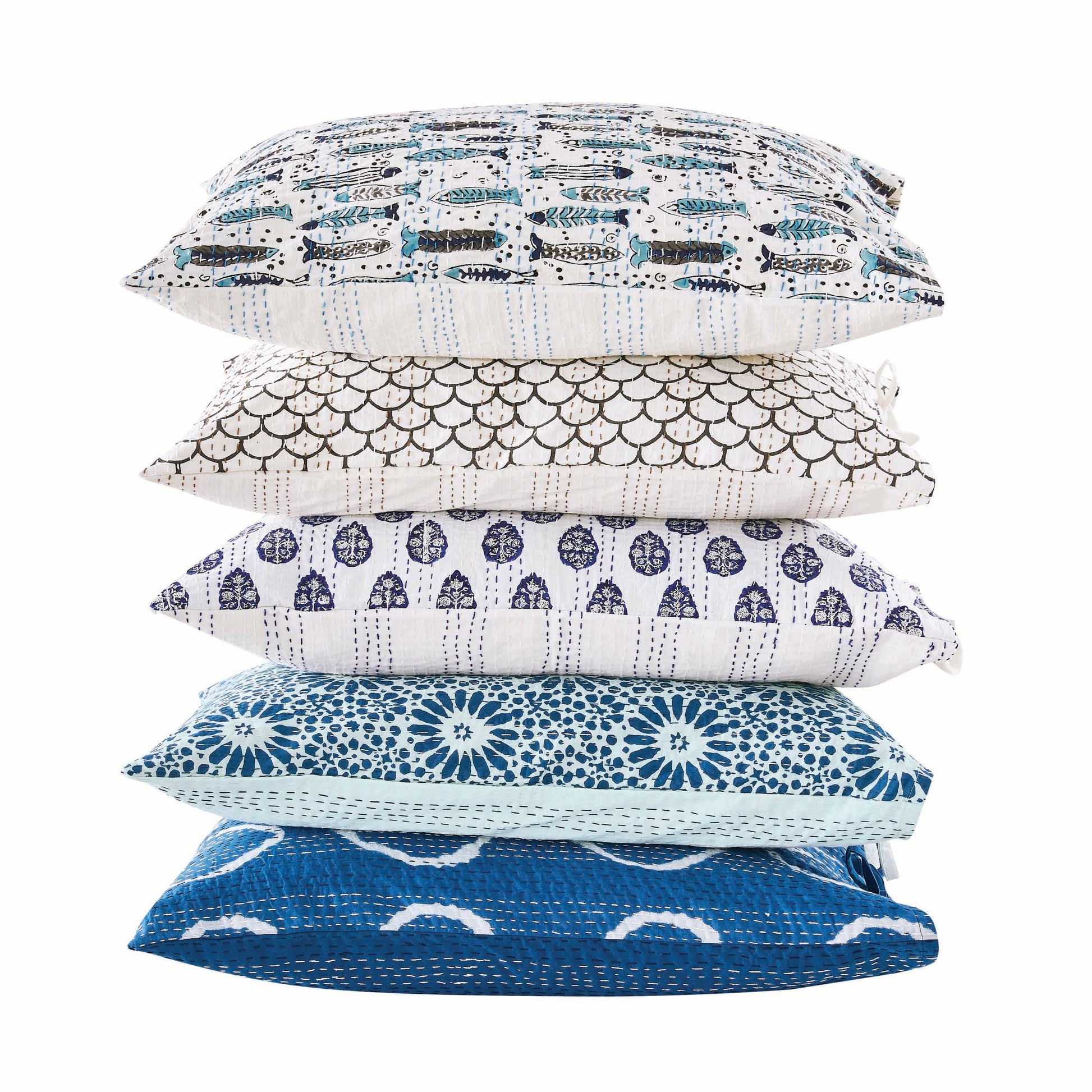Our handmade throw features traditional Indian block prints. The cotton fabric is stitched by hand to create a unique piece of decor. Due to the handmade nature of these shams, variations will occur in the printing and stitching.