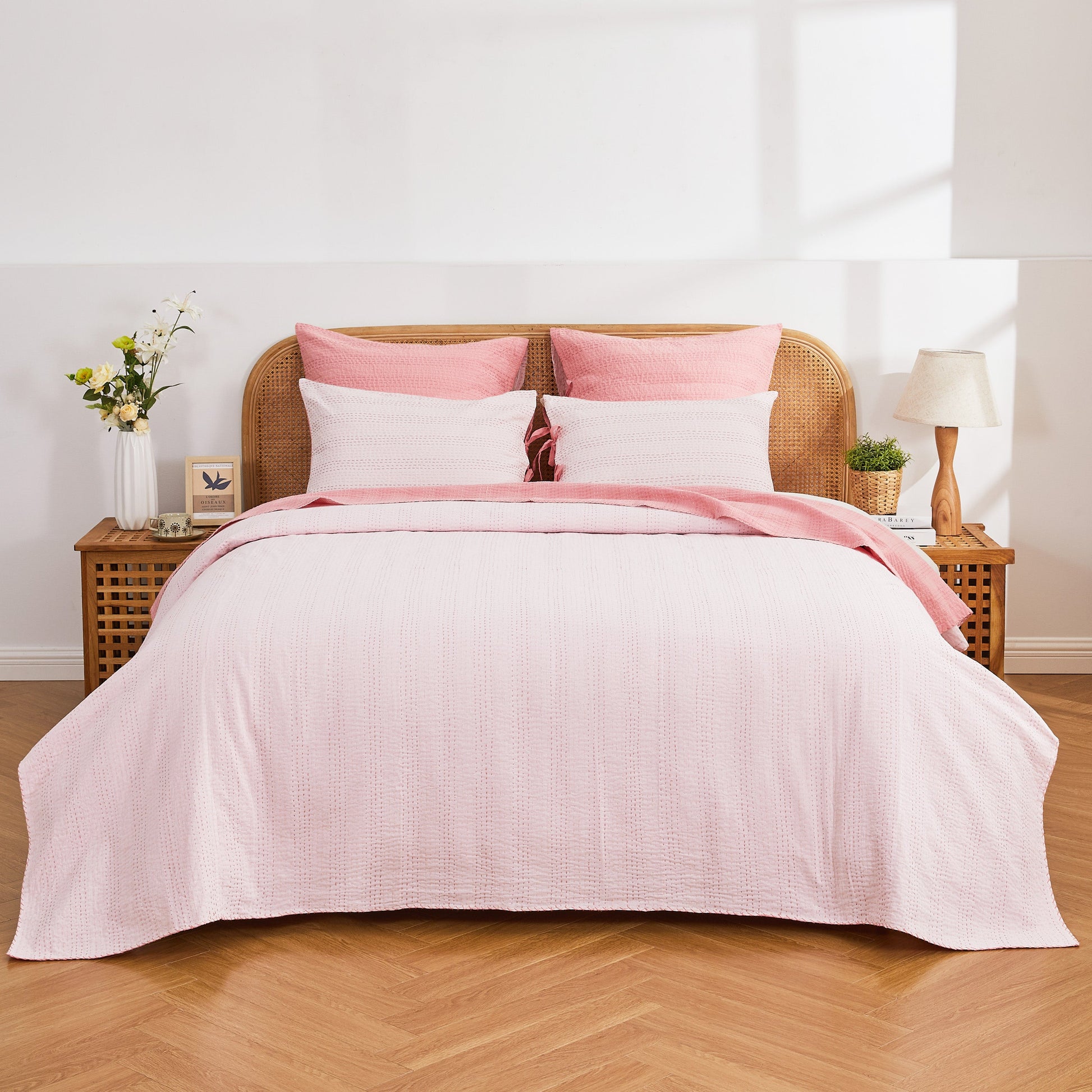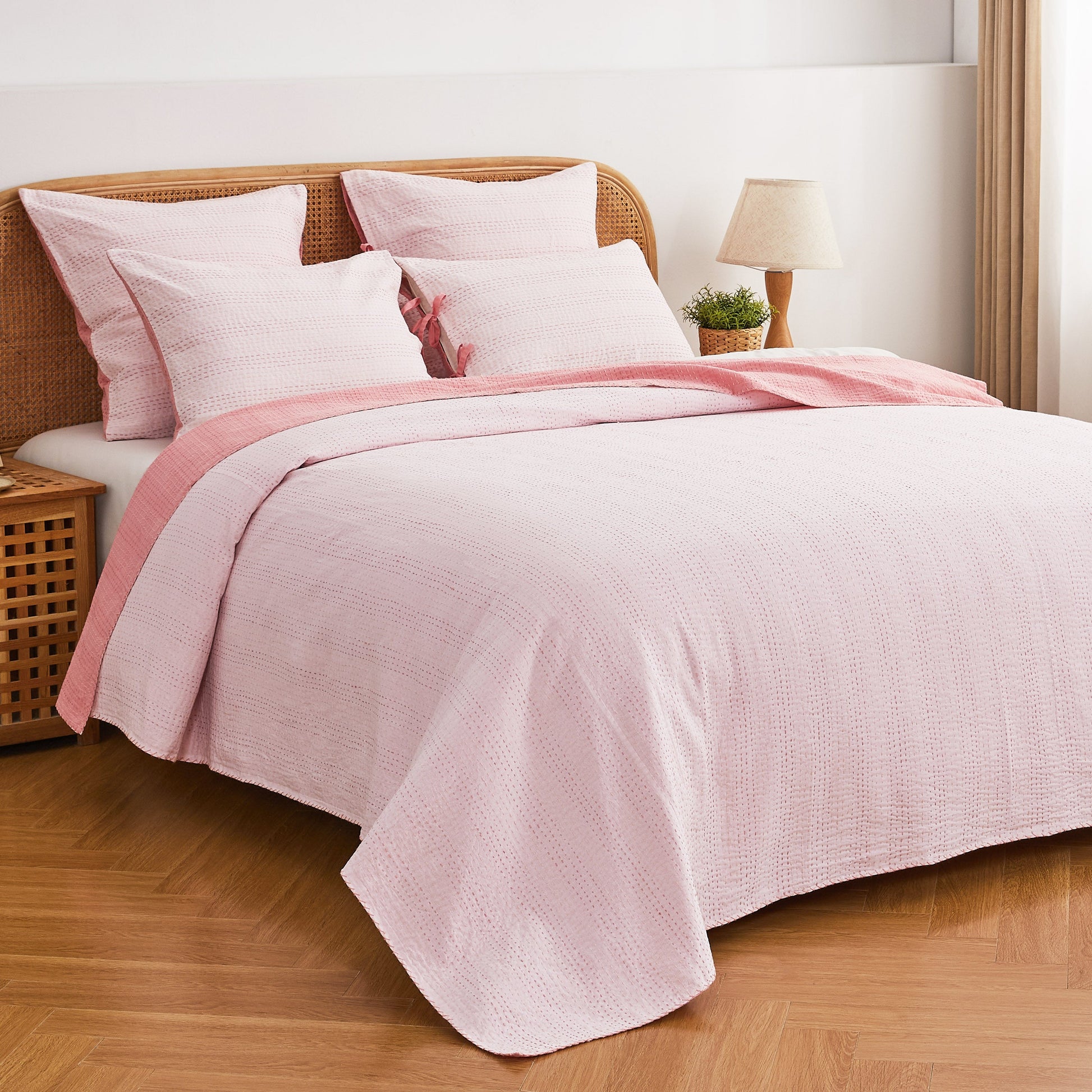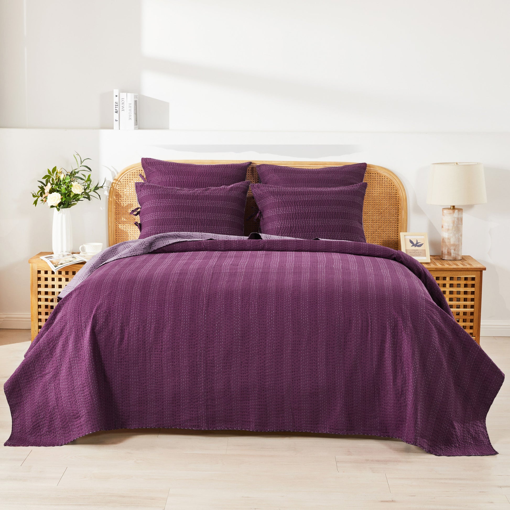 Pairs with Hand Stitched Reversible Kantha Pillow Shams