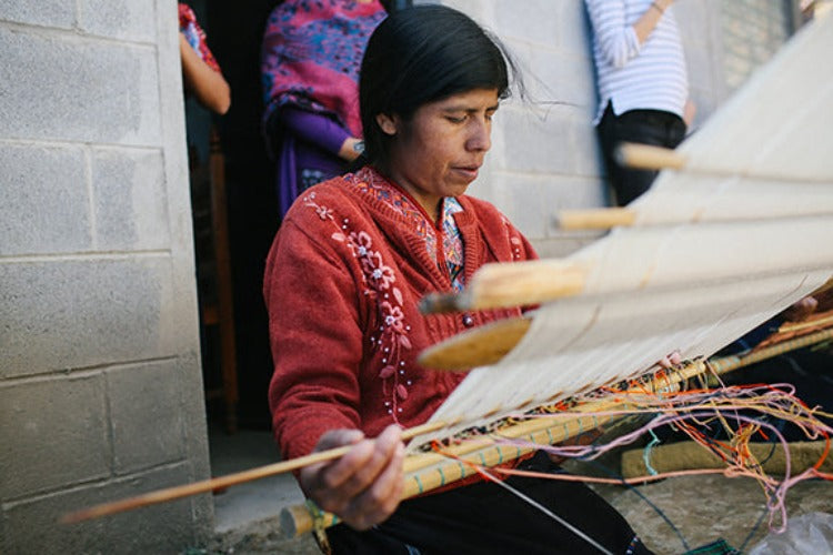 This textile was woven by an artisan from the village of Nahuala, Guatemala using a back-strap loom, a time honored method of weaving. The pattern represents one of Nahuala’s traditional geometric designs. This pillow was made in partnership with a non-profit organization on Lake Atitlan, Guatemala.