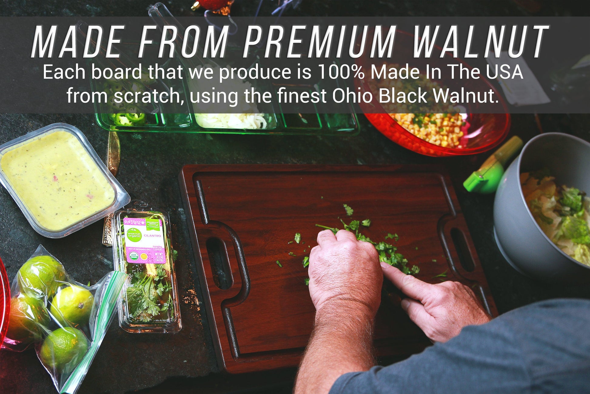 - CUTTING SURFACE IS KNIFE FRIENDLY: Going straight to the supplier and handpicking each piece of Walnut yields an attractive and a completely functional result. Appealing enough to present as home decor, but strong enough as a cutting surface without dulling your knife.