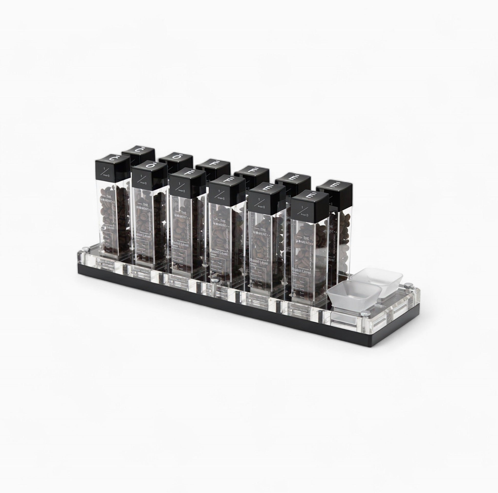 Elevate your coffee storage with the Tubes Coffee Bean Cellars With Stand, a sophisticated solution designed to keep your coffee beans fresh and beautifully displayed. This set includes multiple individual tubes, each capable of holding a specific amount of coffee beans, mounted on a stylish stand that keeps them organized and easily accessible.