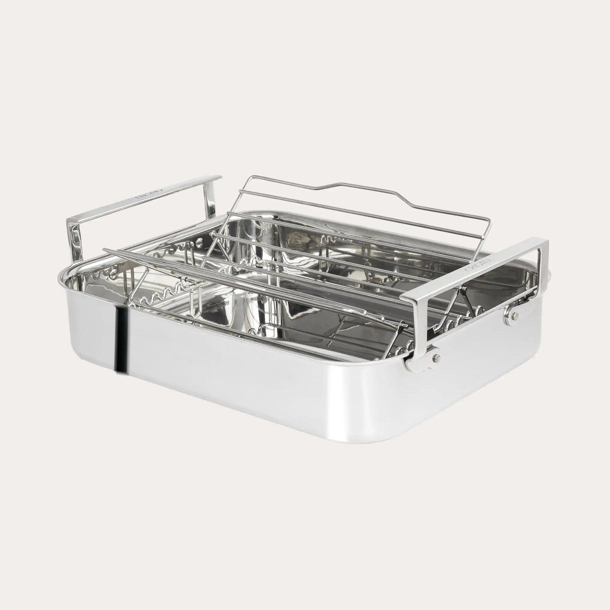 The 3-ply roaster is realized with stainless steel / aluminum / stainless steel thick, the bottom can also be used on an induction cooktop.