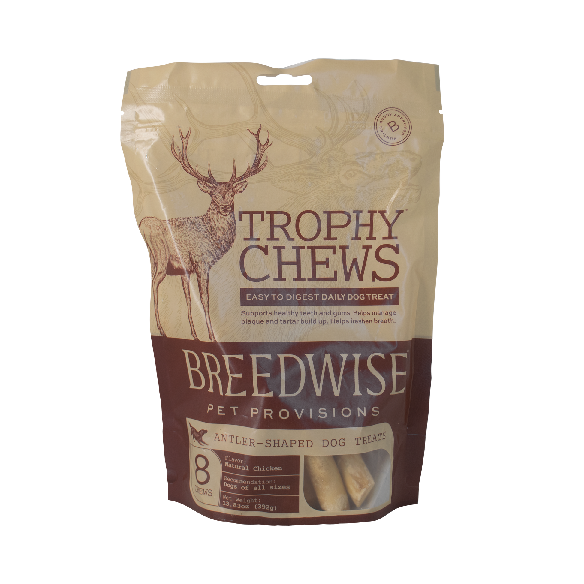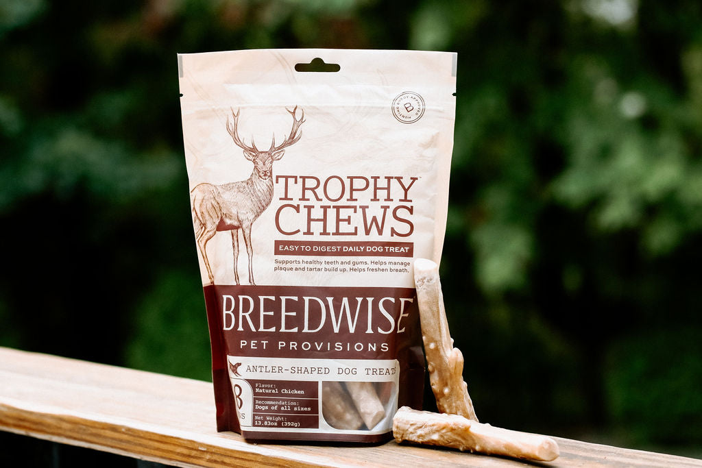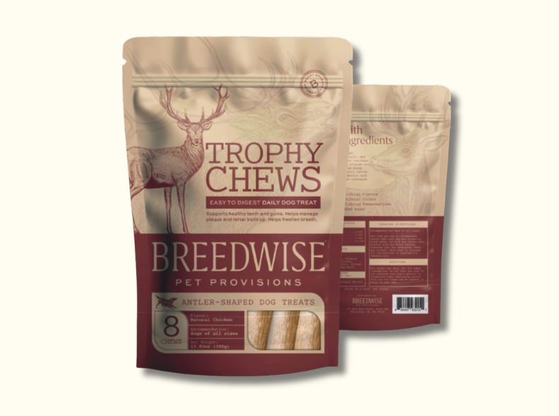 THE ULTIMATE DOG CHEW: Breedwise Trophy Chews are an innovative, all natural dog chew, offering a unique antler shape for easy gripping and extended chew sessions. Each rewarding chew is infused with irresistible chicken flavor, not only providing your dog fun and satisfaction, but also actively supporting cognitive enrichment and dental health.