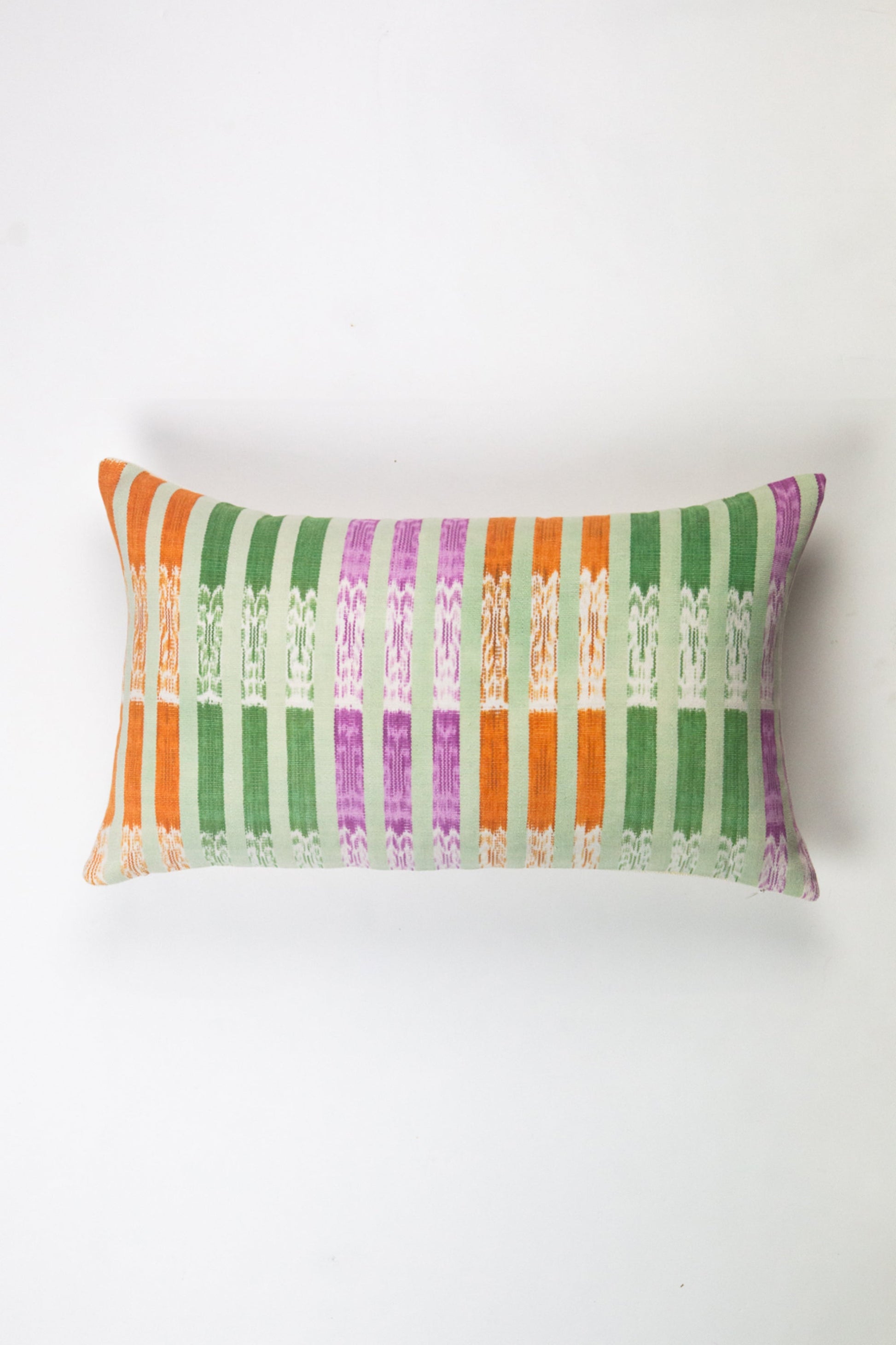 Vintage Ikat Mint Green, Orange & Magenta Stripe Pillow