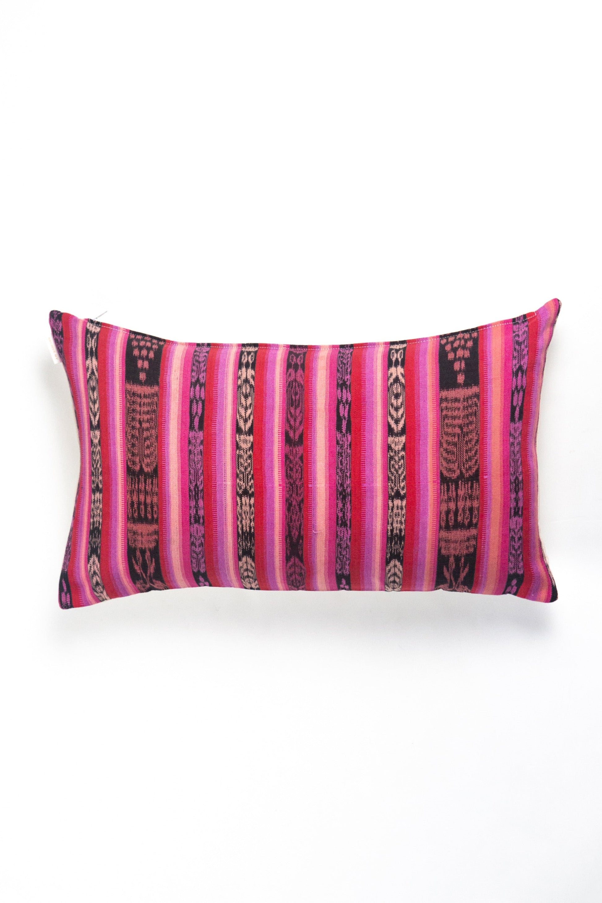 This vintage Guatemalan textile was originally a traditional skirt fabric. It is made from ikat dyed fabric with multi-colored stripes, then handwoven on a footloom.