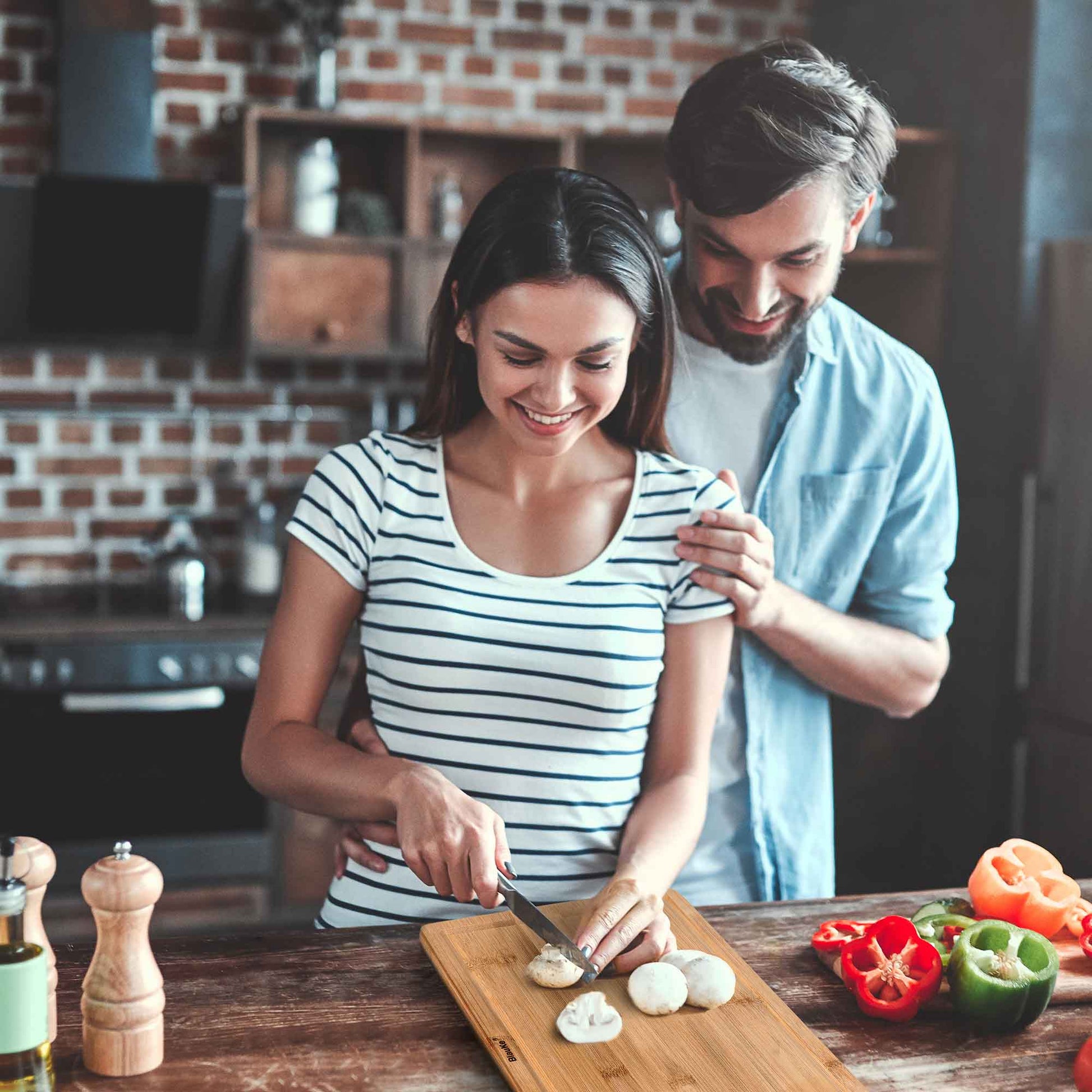 Our bamboo cutting board is perfect for many kitchen tasks. You can use it to cut any kind of meat, fish or veggies, or as a bamboo serving tray for appetizers, cheese, fruits or charcuterie. It's great as a wood cutting board for kitchen, cheese platter, or charcuterie board.